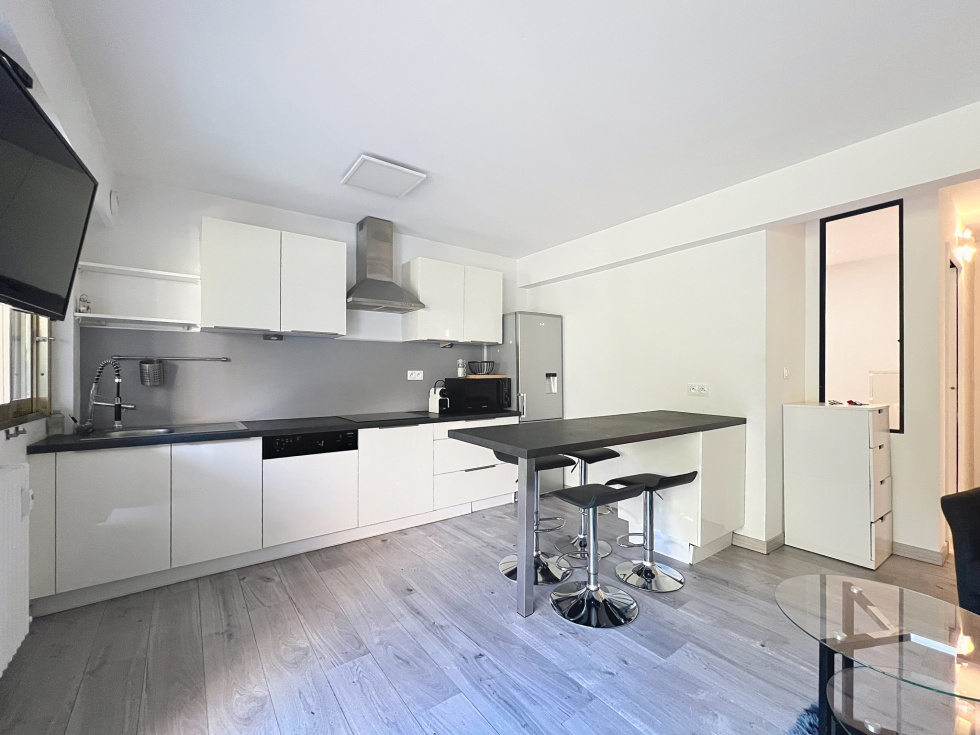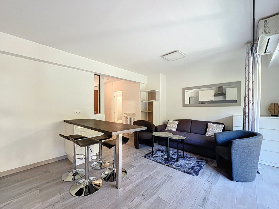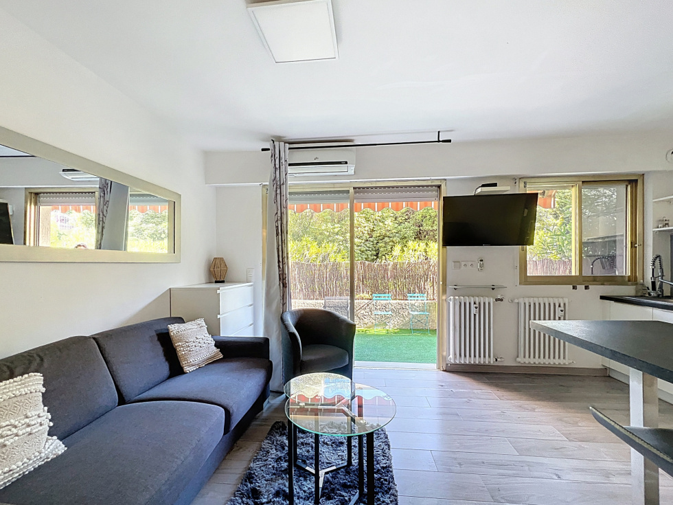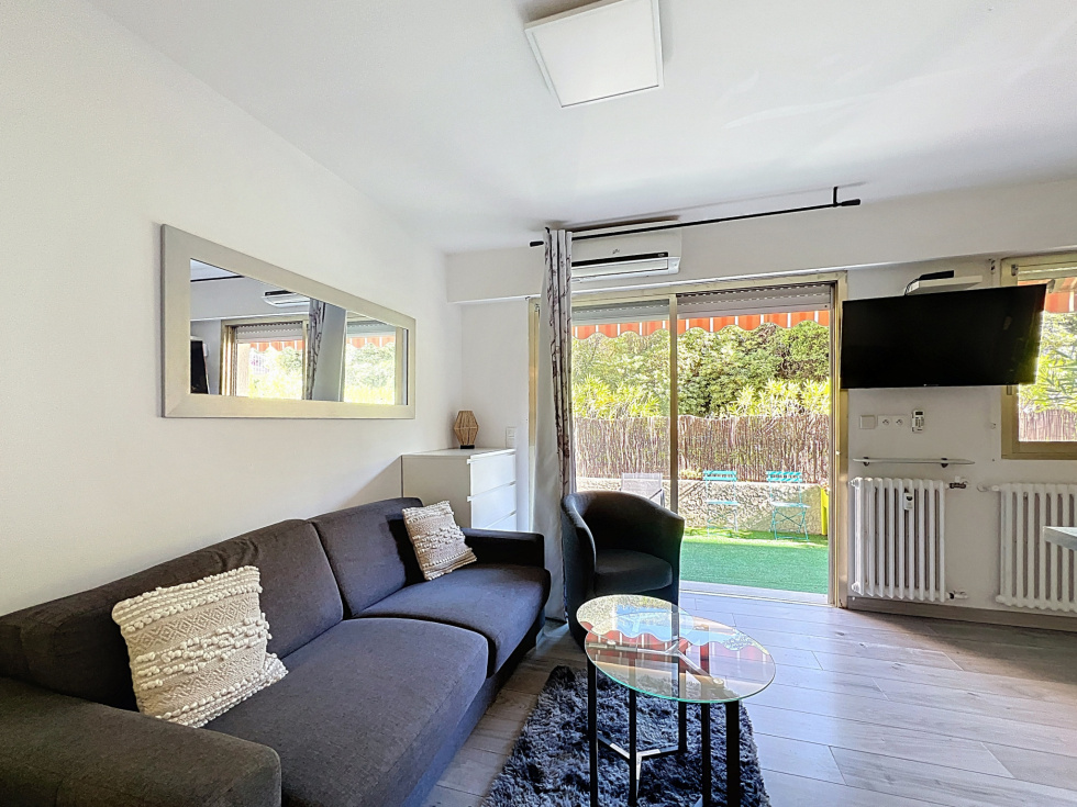 À seulement quelques pas de la Place De Gaulle, dans une résidence de bon standing sécurisée avec gardien, venez découvrir ce grand studio lumineux de 35 m², en excellent état et entièrement équipé, idéal pour un premier achat, un pied-à-terre ou un investissement locatif. Grand espace de vie avec coin nuit distinct.Terrasse ensoleillée sans vis-à-vis, au calme absolu. Climatisation réversible, stores électriques, double vitrage. Ce bien bénéficie d’un environnement calme tout en étant au cœur de la ville, à proximité immédiate des commerces, transports, plages et toutes commodités. Une cave.Soumis au régime de copropriété. Charges annuelles 1608€. Honoraires compris à la charge du vendeur.