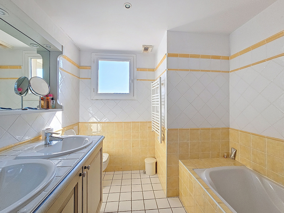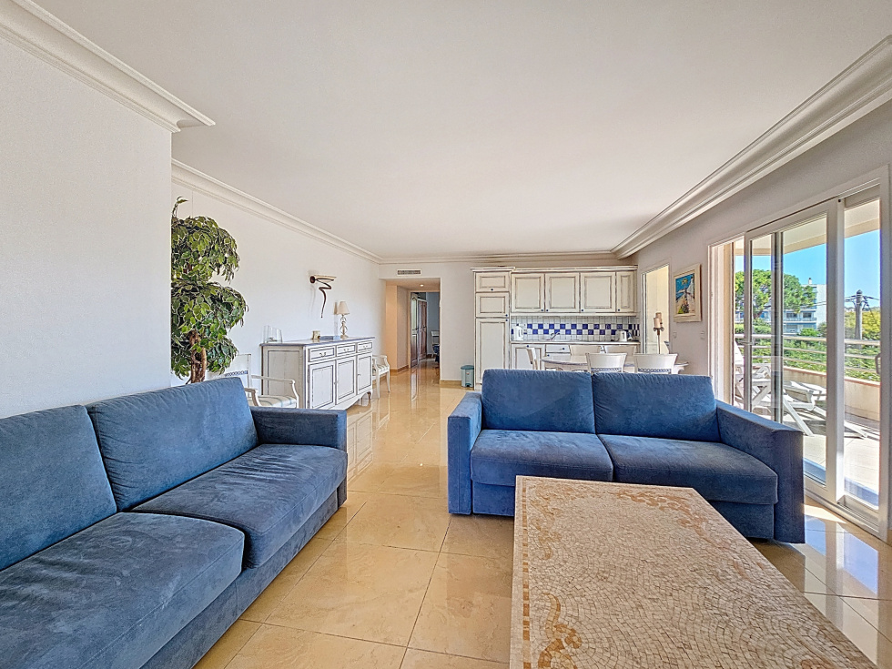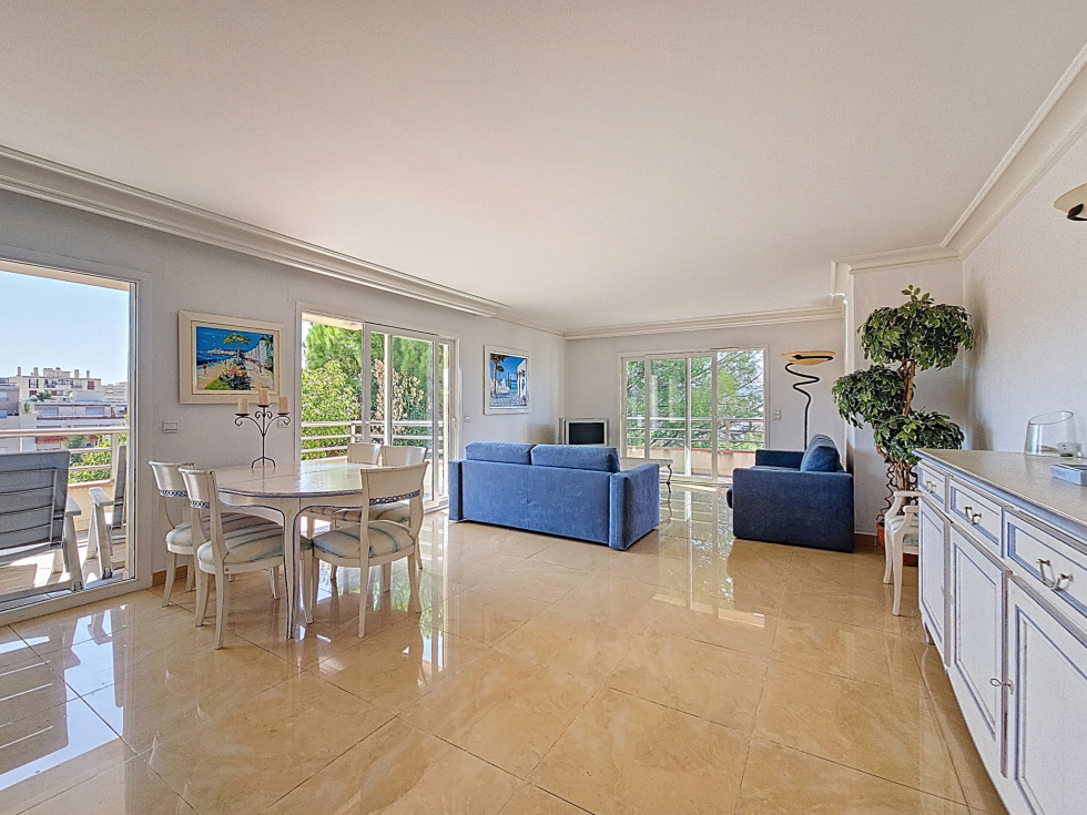Dans une résidence recherchée, au calme absolu et en avant-dernier étage, découvrez ce superbe appartement de 84 m², baigné de lumière et offrant de magnifiques espaces extérieurs. Il se compose d’une entrée accueillante, d’un double séjour avec cuisine ouverte, donnant accès à deux terrasses exposées Ouest et Sud, idéales pour profiter du soleil tout au long de la journée. La partie nuit comprend trois chambres ouvrant sur une troisième terrasse orientée Est, parfaite pour les réveils en douceur. Vous bénéficierez également de deux salles de bains et deux WC pour un confort optimal. Un garage fermé complète ce bien rare sur le marché. À seulement quelques pas des commerces, transports et plages de Juan-les-Pins, cet appartement est une véritable opportunité pour profiter de la Côte d’Azur dans les meilleures conditions. Soumis au régime de copropriété. Charges annuelles : 4980€ Honoraires compris à la charge de l'acquéreur d'un montant de 6%.