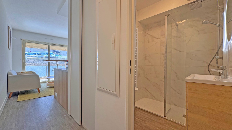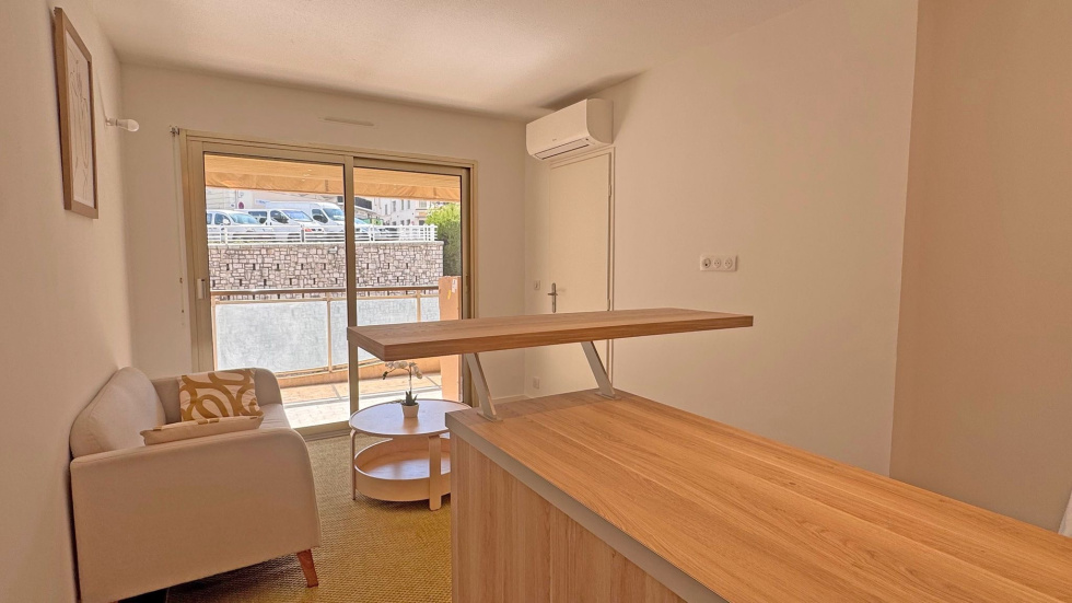Situé au bas du quartier recherché et très agréable du Petit Juas, cet appartement bénéficie d’un emplacement idéal : tous les commerces sont à proximité immédiate et les plages ainsi que le Palais des Festivals se trouvent à seulement 8 minutes à pied. L’appartement est niché dans une copropriété parfaitement entretenue, gage de sérénité et de confort. Il se compose d’une entrée avec couloir, desservant une salle d’eau avec WC, puis d’un séjour lumineux avec cuisine américaine entièrement équipée, ouvert sur une belle terrasse exposée sud-ouest. Une chambre de bonne taille donne également sur cette terrasse, idéale pour profiter du soleil en toute tranquillité. Parfaitement entretenu, ce bien ne nécessite aucun travaux : double vitrage, climatisation, prestations récentes. En supplément, vous aurez la possibilité d’acquérir un parking dans la résidence. Un appartement coup de cœur, alliant confort moderne et situation privilégiée au cœur de Cannes.