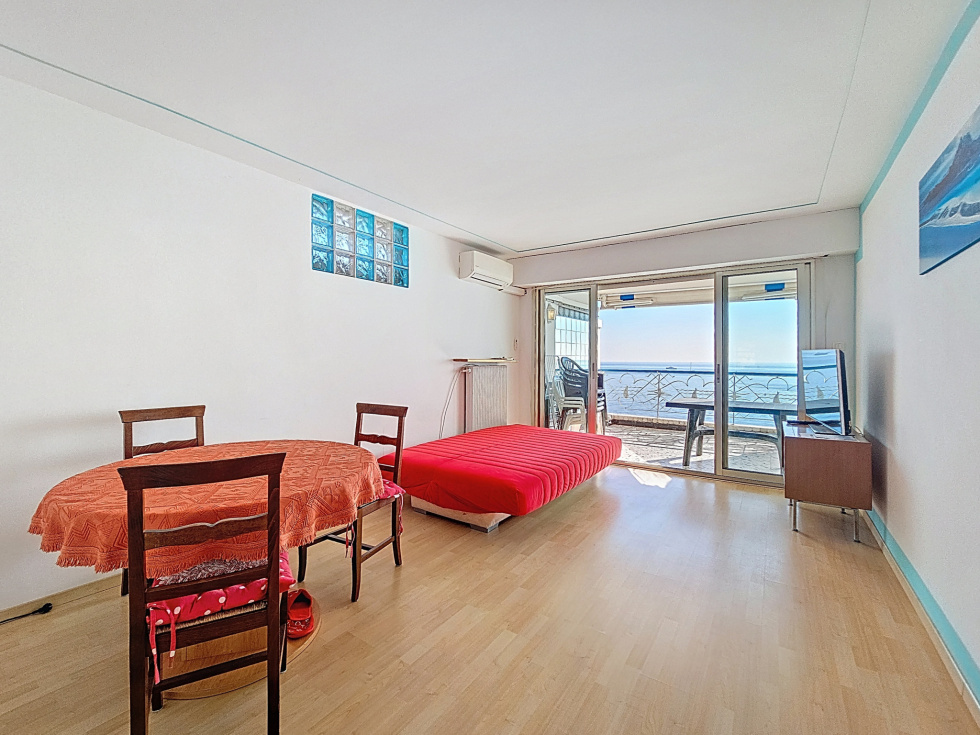 Découvrez ce magnifique deux pièces situé au dernier étage d'angle et traversant d’une résidence prisée, offrant une vue mer à couper le souffle. Idéalement placé face à la mer et à proximité immédiate de toutes les commodités, ce bien rare allie confort, élégance et qualité de vie. L’appartement se compose d’un séjour lumineux ouvrant sur une large terrasse avec vue mer panoramique, d’une cuisine équipée, d’une chambre spacieuse avec une vue sur les montagnes de la côte d'azur et d’une salle de bain. Pour compléter le confort de l'appartement, une climatisation, ainsi que deux caves. Soumis aux régime de copropriété. Charges annuelles: 1564€. Honoraires compris à la charge du vendeur.