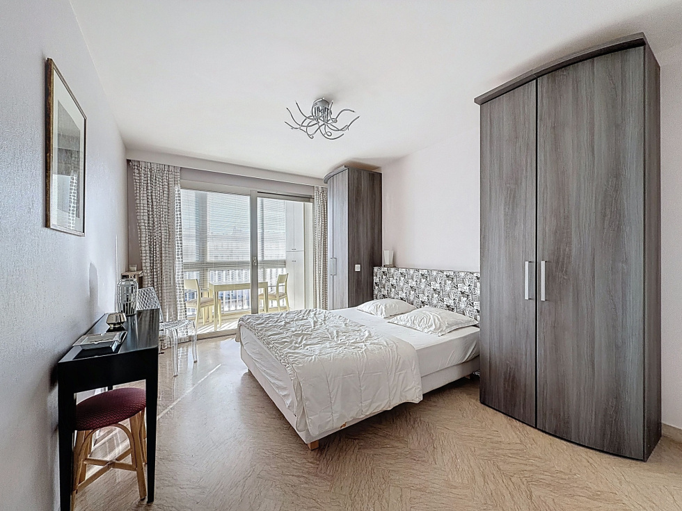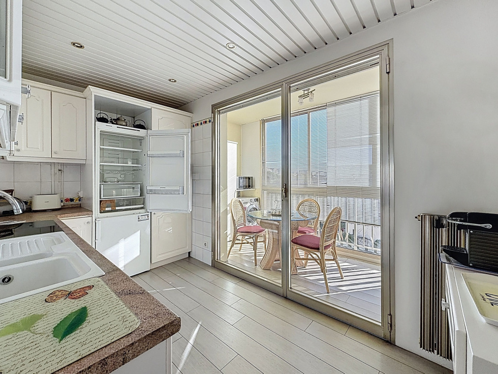 Idéalement situé au 5ᵉ étage d’une résidence de standing avec gardien, cet appartement traversant plein Ouest bénéficie d’une belle vue mer et d’un emplacement privilégié, à deux pas des commerces, des restaurants et du bord de mer. Il se compose d’une entrée, d’un séjour lumineux, d’une cuisine indépendante ouvrant sur une loggia, de deux chambresdont une avec accès loggia, d’une salle de bain avec WC, d’une salle de douche, et d’un WC indépendant. L’appartement offre un excellent potentiel, dans un environnement recherché et paisible. Possibilité d’acquérir un garage en supplément. Soumis au régime de copropriété. Charges annuelles: 3 840€ Les honoraires sont à la charges du vendeur
