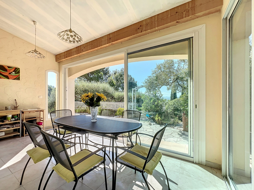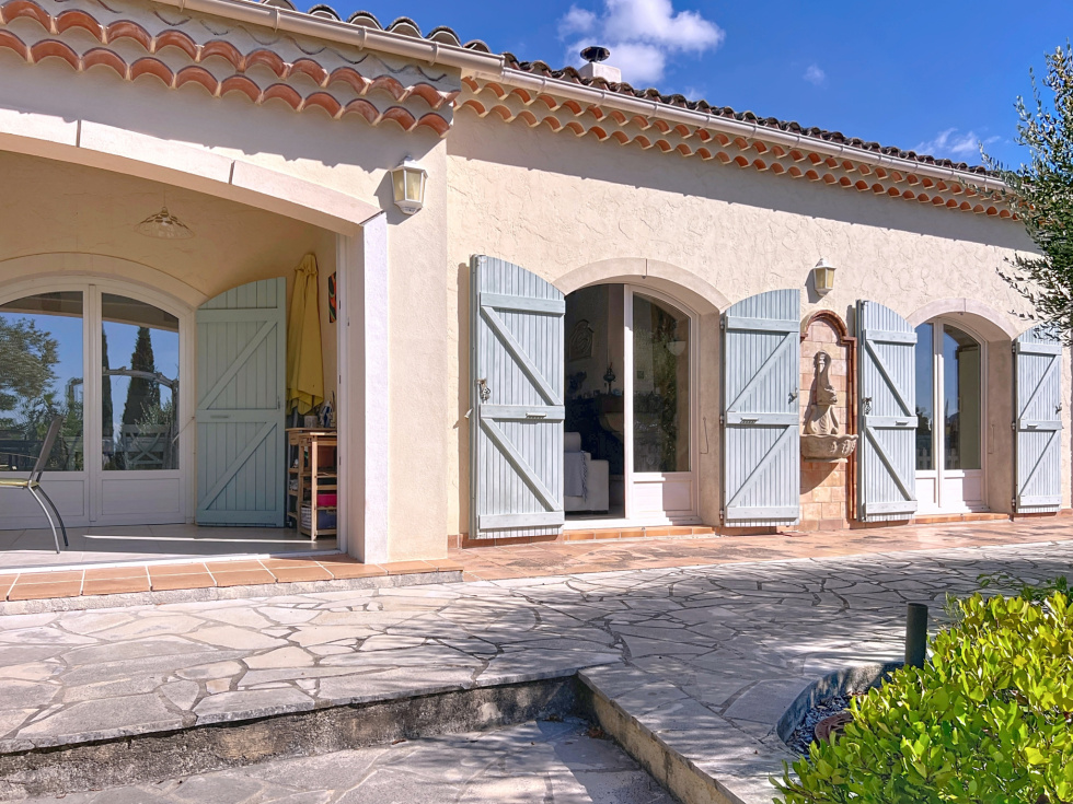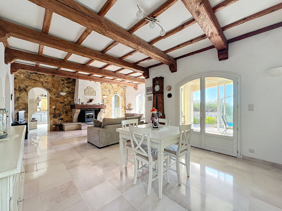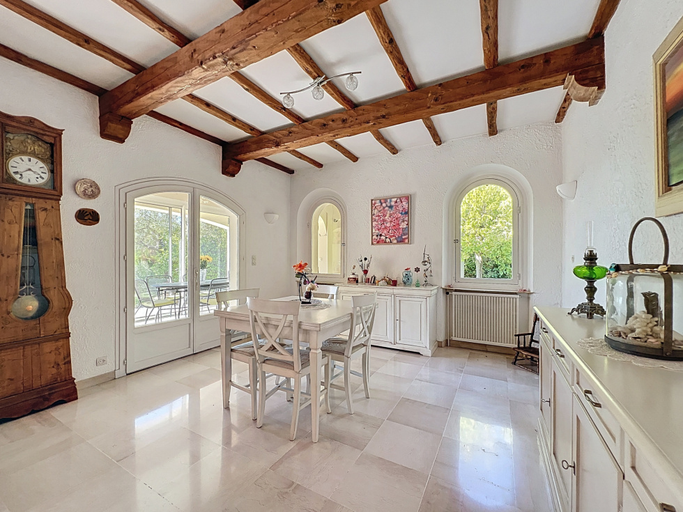Dans l’un des quartiers les plus recherchés de Draguignan, découvrez cette superbe maison de plain-pied de 137,89 m² habitables (250 m² avec annexes), nichée en position dominante et offrant une vue dégagée sans aucun vis-à-vis exposé plein Sud. Dès l’arrivée, vous serez séduits par son vaste espace extérieur : aire de stationnement goudronnée, pouvant accueillir jusqu’à 7 à 8 véhicules, ainsi que 3 grands garages, dont un directement attenant à la maison avec accès intérieur. À l’intérieur, la maison conjugue lumière, charme et volumes généreux : • 4 chambres, dont une suite parentale avec rangements, salle d’eau et WC, • Une seconde salle d’eau avec WC, • Un vaste séjour avec cheminée et salle à manger, • Une cuisine indépendante avec insert pouvant être ouverte pour créer une pièce de vie de près de 50 m². Toutes les pièces principales s’ouvrent sur l’extérieur : • Grande terrasse ensoleillée, • Véranda attenante à la salle à manger, • Accès direct sur le terrain arboré de 1 545 m², agrémenté d’une piscine pour profiter des beaux jours. Un grenier complète l’ensemble, idéal pour du rangement ou un futur aménagement. Maison de construction solide, offrant un cadre de vie paisible et verdoyant, à seulement quelques minutes du centre de Draguignan. Quelques rafraîchissements permettront de la mettre à votre goût et d’en révéler tout le potentiel. Un bien rare, alliant volumes, luminosité et emplacement exceptionnel. Soumis au régime de copropriété. Charges annuelles: 280€