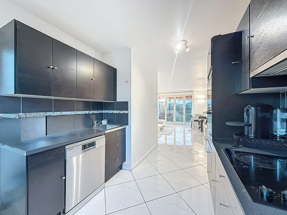 EXCLUSIVITÉ – Antibes. À deux pas des plages, des commerces et des axes routiers, découvrez ce spacieux 2 pièces de près de 57 m², idéalement situé au sein d’une résidence familiale, calme et sécurisée avec gardien. Cet appartement traversant se compose d’une agréable pièce de vie lumineuse avec cuisine semi-ouverte, d’une buanderie et d’une loggia à l’arrière. Côté nuit, vous profiterez d’une belle chambre avec dressing, d’une salle de douche avec fenêtre, ainsi que d’un WC indépendant. Une terrasse exposée plein sud, avec cellier attenant, vient compléter l’ensemble. Vous apprécierez le double vitrage, la climatisation dans le séjour et la chambre, ainsi que l’absence totale de travaux à prévoir. Un stationnement extérieur privatif complète ce bien. Soumis au régime de copropriété. Charges annuelles : 1 584 € – Copropriété avec gardien. Honoraires à la charge du vendeur.