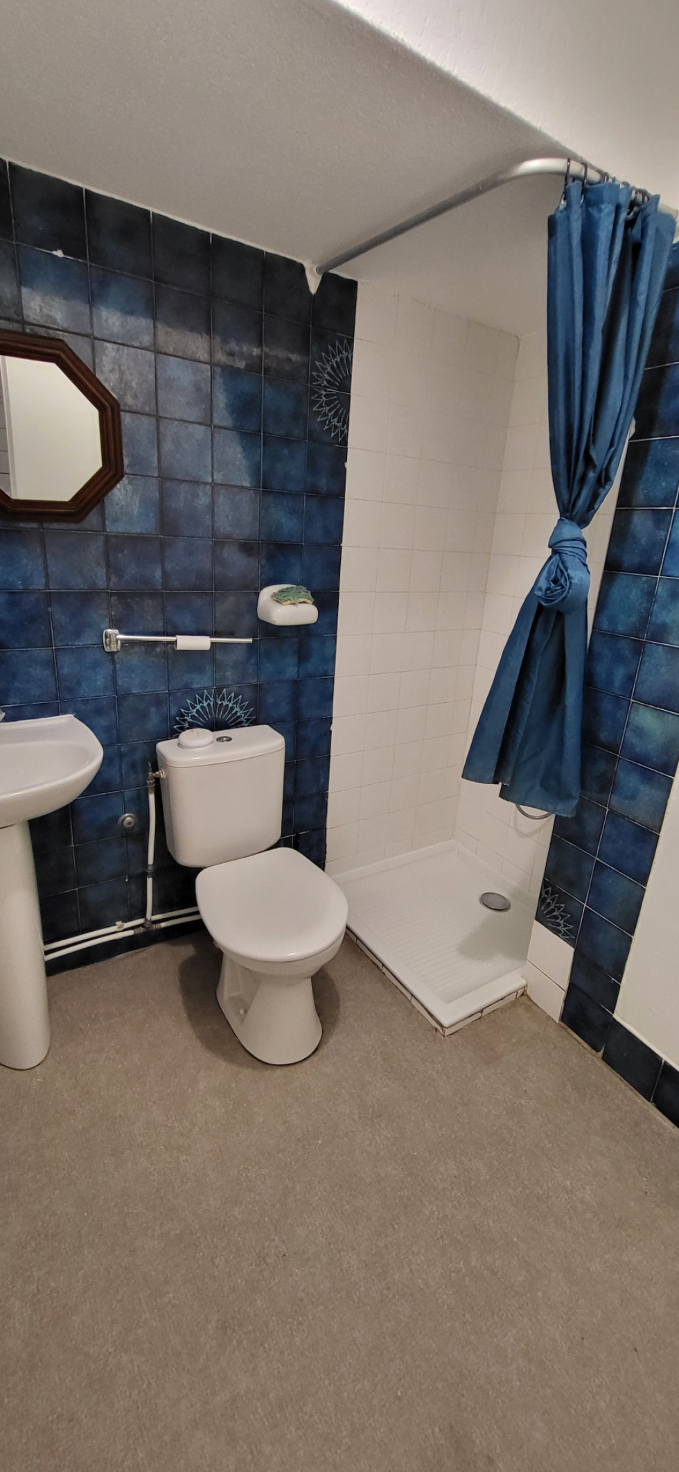 Studette vide à louer à Marina Baie des Anges. Kitchenette équipée, séjour, salle de douche avec WC.