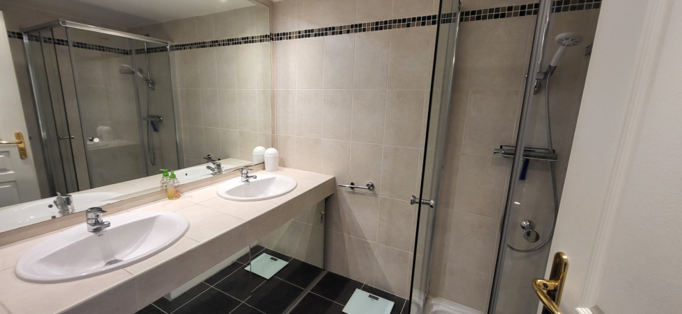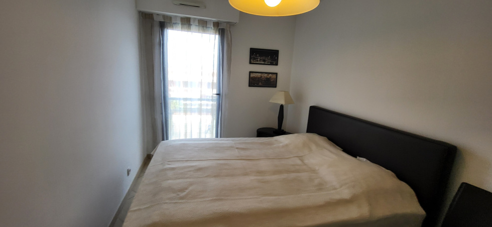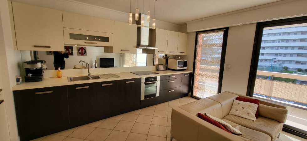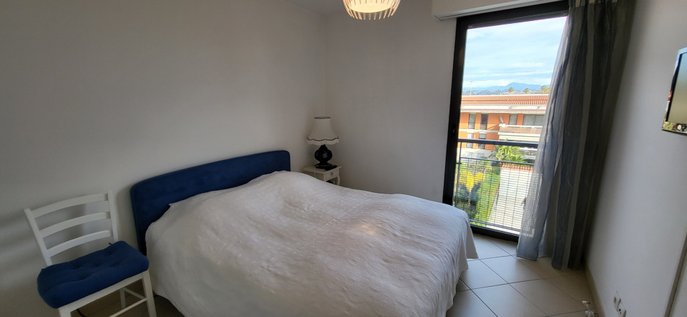 Superbe 3 pièces de 64 m² + 27 m² de terrasse en dernier étage en location meublée à l'année à Villeneuve Loubet Plage. Loué avec un garage. Climatisation. Résidence sécurisée avec piscine.