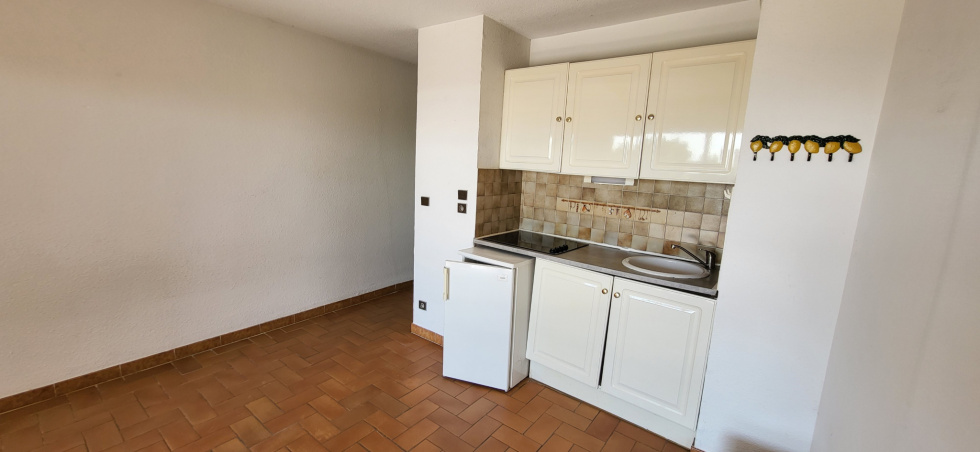 2 pièces en rez de jardin en location vide à l'année, 28 m² + grande terrasse, vue mer, cuisine ouverte équipée, parking privatif. Résidence front de mer. disponible le 11 mars 2026.