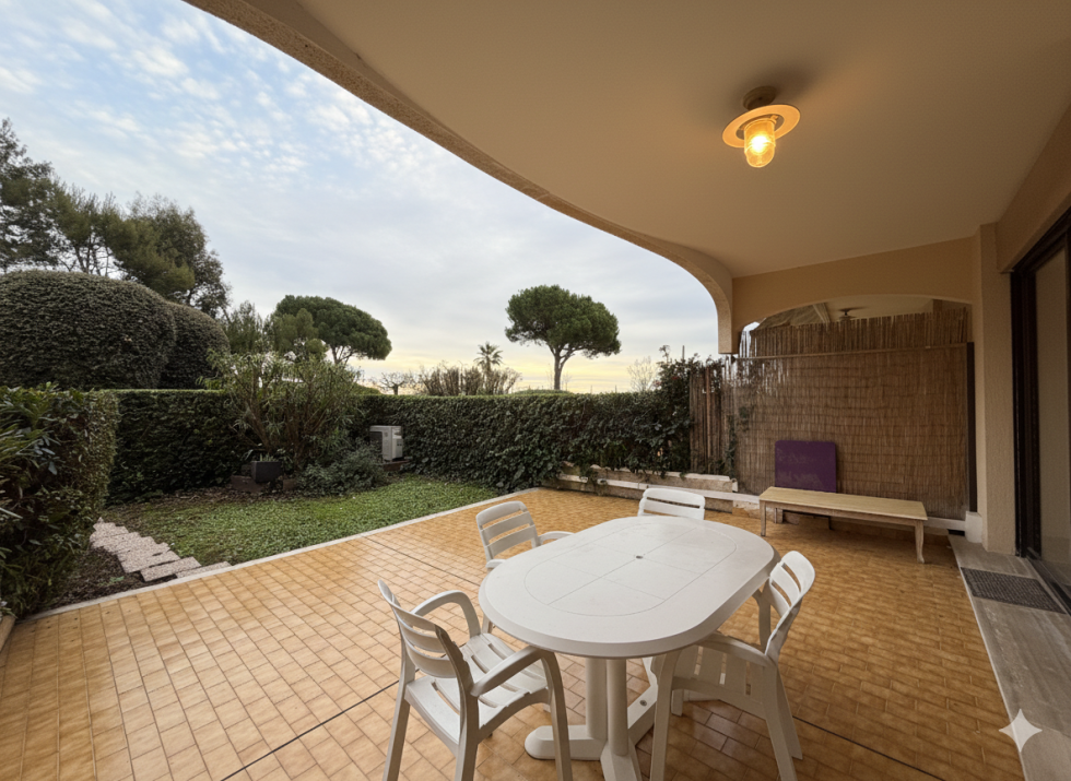 Situé au sein d’une copropriété de très bon standing avec piscine, ce deux-pièces en rez-de-jardin offre un cadre de vie rare et recherché, alliant calme absolu, vue mer et accès privatif direct à la plage. D’une superficie d’environ 55 m², l’appartement séduit dès l’entrée par son environnement verdoyant et sa sérénité. Il s’ouvre sur un agréable jardin privatif d’environ 50 m², véritable prolongement de l’espace de vie, idéal pour profiter de moments de détente en toute tranquillité, face à la mer. L’appartement bénéficie d’une vue mer tout en étant parfaitement au calme, au cœur d’un parc arboré parfaitement entretenu, offrant un cadre privilégié et sécurisé. La copropriété, particulièrement recherchée, dispose également d’une piscine et d’un accès direct et privatif à la plage, un atout exceptionnel et très rare sur le marché. L’emplacement est idéal : à proximité immédiate des commerces, des plages, des restaurants et des transports, tout en conservant une atmosphère paisible, loin des nuisances. Ce bien est complété par une cave ainsi qu’un garage en sous-sol, apportant un confort et une praticité supplémentaires. Soumis au régime de copropriété. Charges annuelles: 2220 €