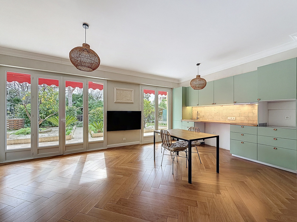 Dans une résidence de standing, découvrez ce superbe appartement 3 pièces de 67 m² en rez-de-jardin, véritable havre de paix baigné de soleil. Dès l’entrée, vous serez séduit par un espace fonctionnel avec coin bureau idéal pour le télétravail et un grand placard de rangement. Le séjour, spacieux et particulièrement lumineux grâce à son exposition plein sud, s’ouvre sur une élégante cuisine américaine parfaitement intégrée, créant un espace de vie convivial et moderne. Côté nuit, deux chambres confortables bénéficient d’un accès direct à la terrasse et au magnifique jardin privatif de 110 m², sans aucun vis-à-vis. Un véritable prolongement de l’espace de vie, idéal pour recevoir, se détendre ou profiter des beaux jours en toute intimité. L’appartement dispose également d’une salle de bain, d’un WC indépendant et de prestations de qualité : – Volets roulants électriques – Double vitrage – Climatisation gainable – Store banne électrique Le tout dans un environnement calme et recherché. Une place de parking ainsi qu’une cave complètent ce bien. Une place supplémentaire est disponible devant l’entrée de l’immeuble, et un garage en sous-sol peut être acquis en supplément. Un bien rare sur le marché, alliant confort, extérieur généreux et qualité de vie. À découvrir sans tarder.