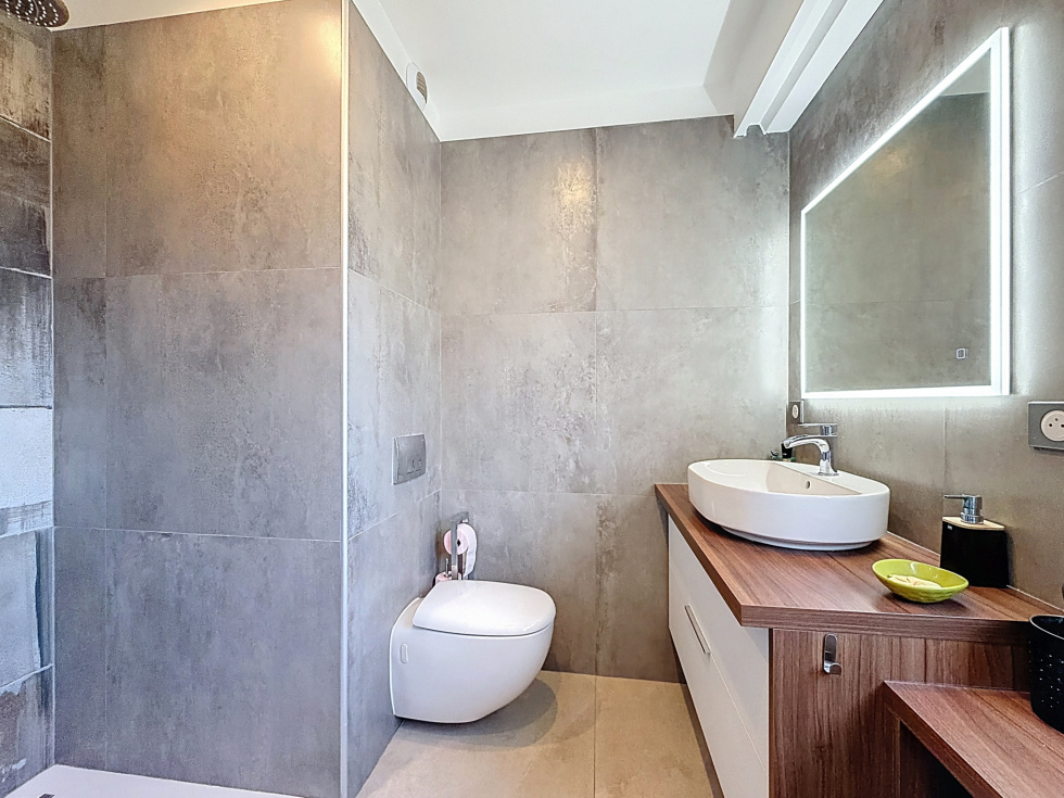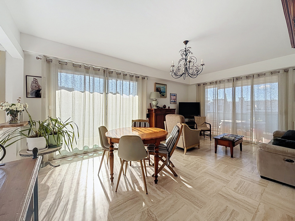 Dans une résidence de standing des années 70 avec ascenseur, au troisième étage, découvrez ce superbe appartement 3 pièces de 75 m², idéalement situé au calme absolu tout en étant à proximité immédiate des plages, des commerces et des transports. En position d’angle et bénéficiant d’une exposition SUD et OUEST, il profite d’une luminosité exceptionnelle du matin jusqu’au soir, offrant un ensoleillement optimal toute l’année. Entièrement rénové avec de jolies prestations, l’appartement se compose d’une entrée, d’une cuisine semi-ouverte élégamment intégrée au séjour, de deux chambres et d’une salle de douche moderne avec WC. Toutes les pièces, à l’exception d’une chambre, s’ouvrent sur une magnifique terrasse d’angle de 27 m² exposée sud-ouest, véritable prolongement du séjour et espace de vie extérieur privilégié pour recevoir ou simplement profiter du soleil en toute tranquillité. Le bien dispose de prestations de qualité telles que la climatisation réversible, des volets roulants électriques et du double vitrage, garantissant confort et efficacité énergétique. Un beau garage en sous-sol ainsi qu’une cave saine complètent ce bien rare sur le secteur. Un appartement clé en main, lumineux et idéalement exposé, parfait en résidence principale comme en pied-à-terre. Soumis au régime de copropriété. Charges annules: 3 728€. Les honoraires sont à la charge du vendeur.