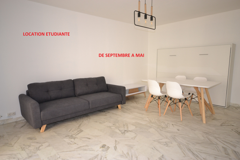 LOCATION ETUDIANTE de SEPTEMBRE à MAI 2027 , secteur bord de mer, très beau studio de 31.35 m² avec vue dégagée dans résidence de standing, proche de toutes commodités, idéalement situé près arrêts bus, séjour avec lit escamotable, salle de bains entièrement rénovée, cuisine indépendante équipée le tout donnant sur belle terrasse de 12 m², salle de bains avec wc. Compris dans les charges : chauffage, eau chaude, eau froide, consommations EDF, taxe d'ordures ménagères,connexion wifi . Honoraires agence 410 euros - dépôt de garantie 1190 euros. -Dossier candidature à transmettre sur le site de l'agence - Contact Aymeric 06 52 42 55 22 - location@planetimmobilier.com