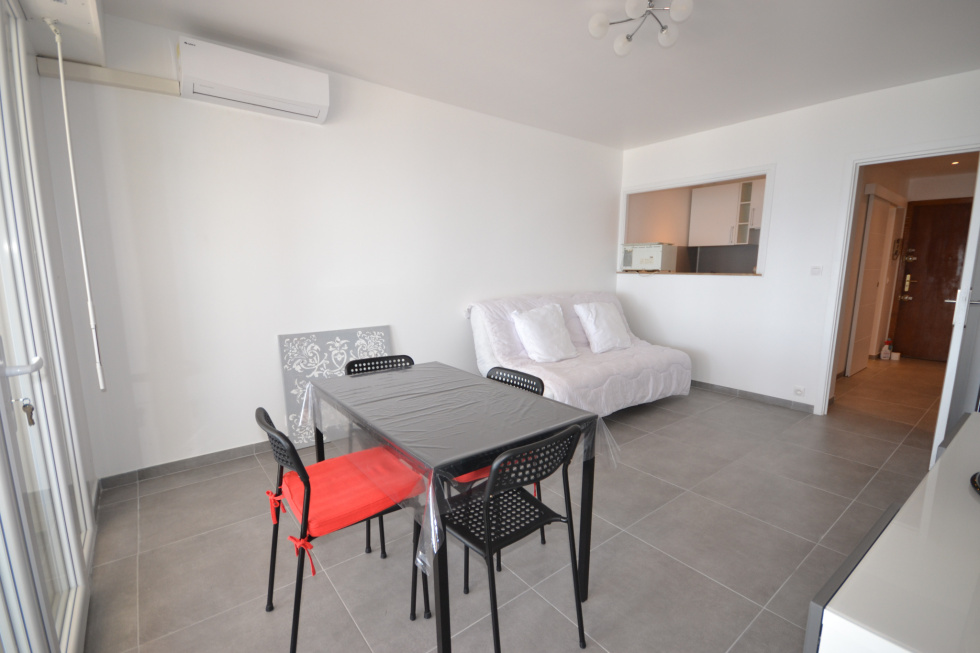 LOCATION ETUDIANTE Juan les pins, face à la mer, dans belle résidence, beau studio climatisé, meublé de septembre à mai 2027, entièrement refait 27.41 m², composé d'une salle de douches avec wc, placard, cuisine américaine et beau séjour donnant sur terrasse plein sud vue mer. Compris dans les charges : charges de copropriété, chauffage, eau chaude, eau froide, électricité, taxe ordures ménagères. Honoraires agence 359 euros - dépot de garantie 1300 euros -Dossier candidature à transmettre sur le site de l'agence - Contact Aymeric 06 52 42 55 22 - location@planetimmobilier.com