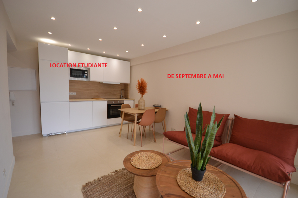 LOCATION ETUDIANTE secteur SAINT HONORAT Juan les pins, 3 pièces de 39.88 m² en colocation de septembre à mai 2027 composé d'une entrée, séjour/cuisine américaine, donnant sur terrasse, salle de douches, wc, 2 chambres. climatisation. Proche commerces et plages et au pied des trans ports. Compris dans le loyer les charges de copropriété, chauffage, eau froide, eau chaude, électricité, wifi, ordures ménagères.Honoraires agence 442 euros - dépot de garantie 2290 euros. - Envoyer votre candidature sur le site de l'agence Planet Immobilier. - Contact Aymeric 06 52 42 55 22 - location@planetimmobilier.com