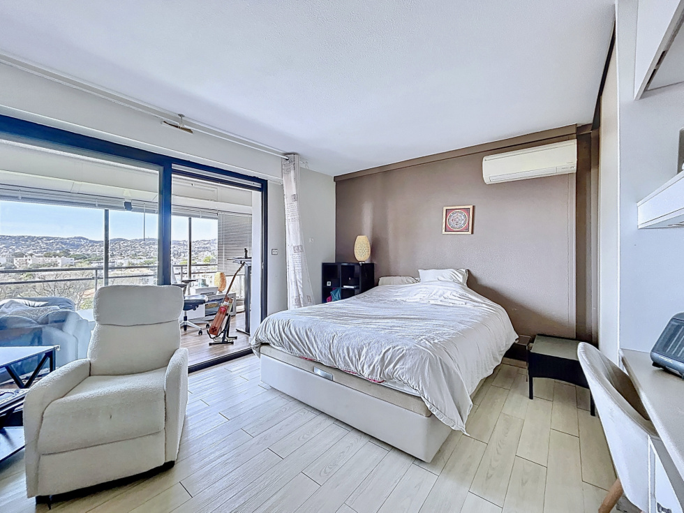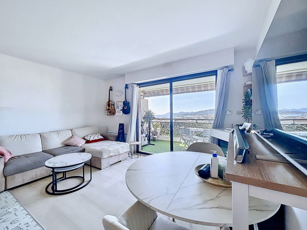 Idéalement situé à Juan-les-Pins, dans une résidence de standing sécurisée avec piscine et parfaitement entretenue, découvrez ce superbe appartement 3 pièces en dernier étage, bénéficiant d’une magnifique vue mer. Vous profiterez d’un emplacement privilégié, permettant de tout faire à pied : plages, commerces et restaurants à quelques minutes seulement. L’appartement, traversant et baigné de lumière, se compose d’une entrée, d’une cuisine indépendante, de deux chambres avec accès extérieur, de deux salles d’eau, ainsi que d’un WC indépendant. La pièce de vie, spacieuse et lumineuse, s’ouvre sur une profonde terrasse offrant une vue mer dégagée, sans vis-à-vis et au calme absolu.Avec près de 30 m² d’espaces extérieurs, ce bien rare vous permettra de profiter pleinement du climat azuréen. Prestations de qualité : climatisation, double vitrage, parking et cave. Un bien coup de cœur, idéal en résidence principale comme secondaire.